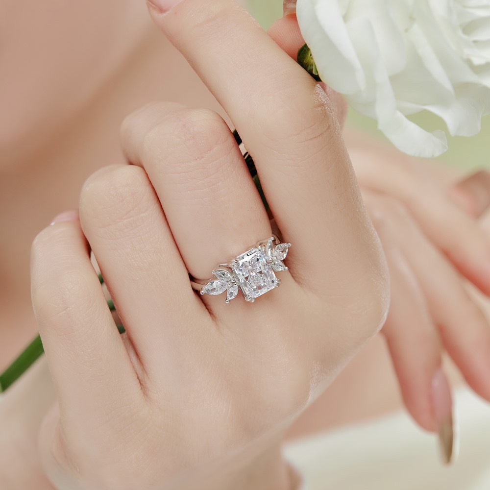 Radiant Cut Ice Flower High Carbon Diamond Simulants Ring