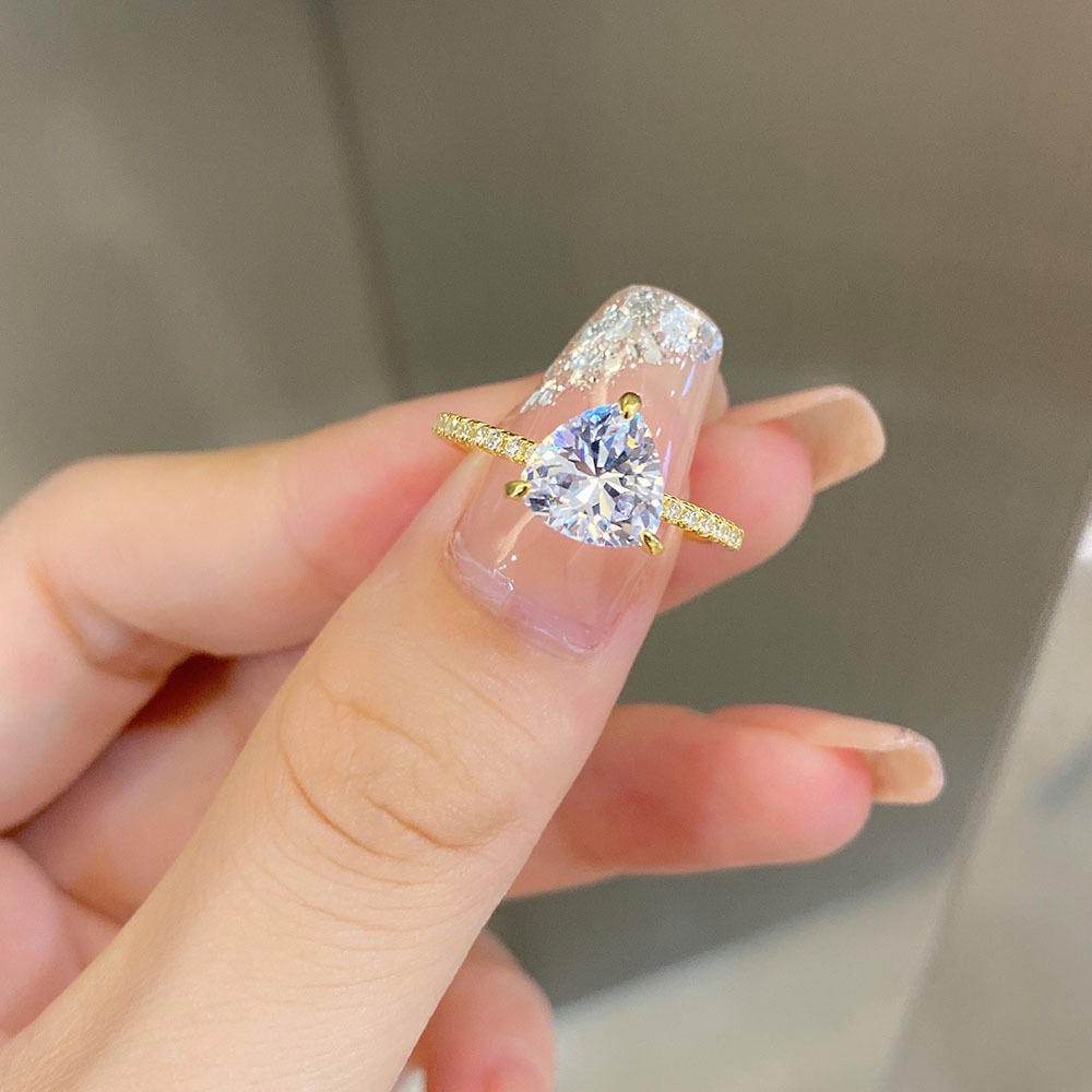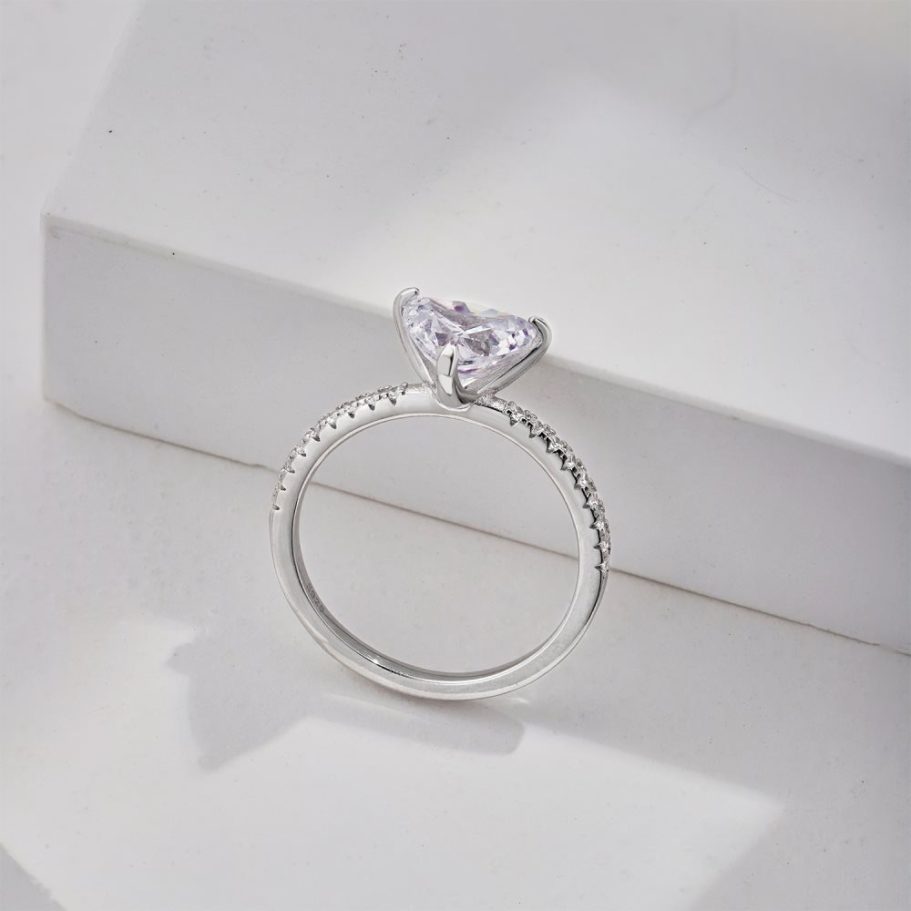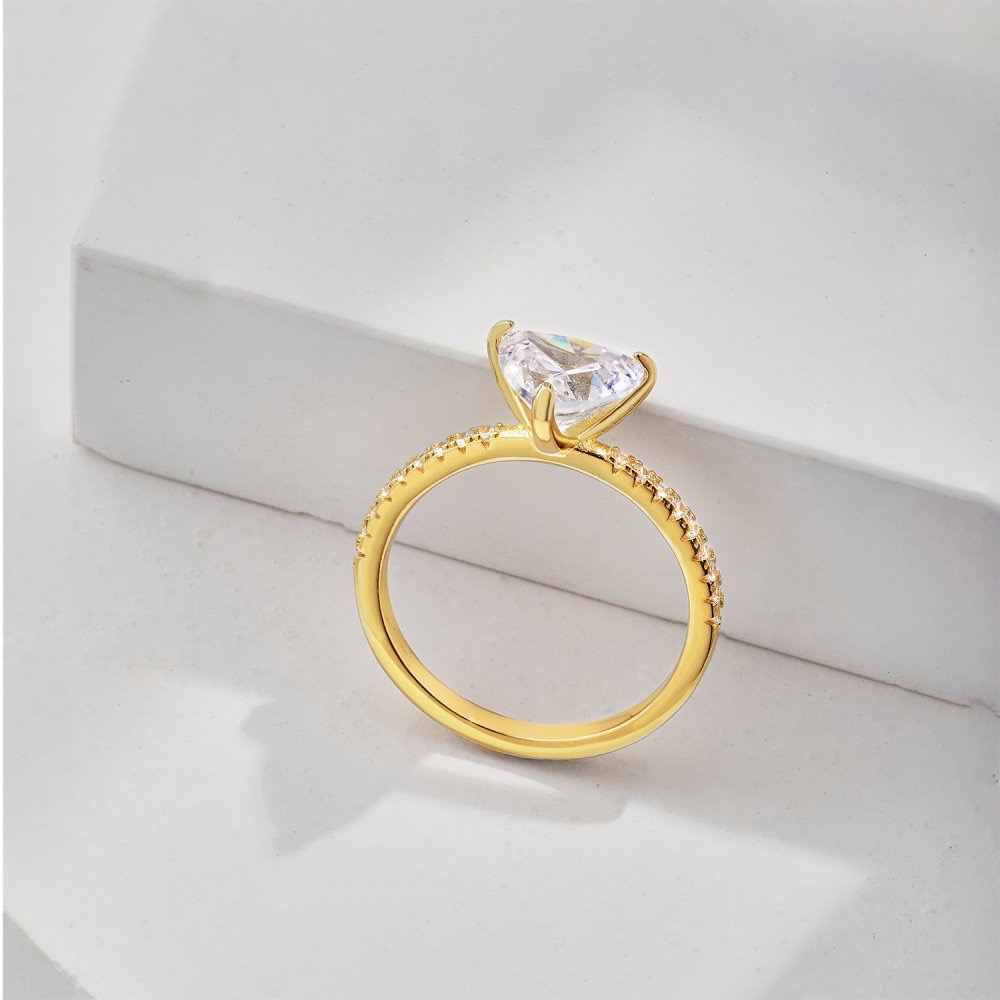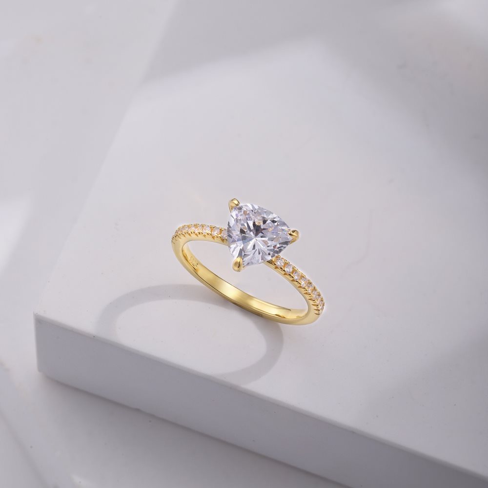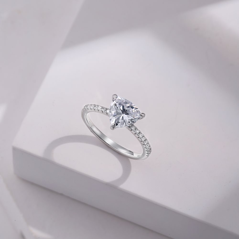 Whether as an engagement ring symbolizing your commitment or a gift expressing your affection, the Trillion Cut Diamond Simulants Solitaire Ring with Pave Band is a testament to your love and a striking statement of style. With its captivating design and exceptional craftsmanship, this ring is destined to be cherished for a lifetime.